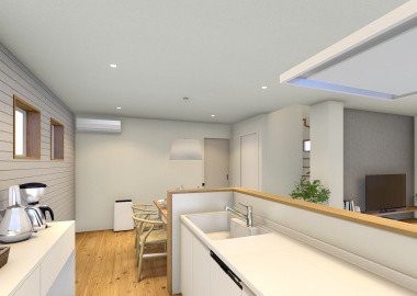 オープンキッチンでリビングでくつろぐ家族の様子を見ながら楽しくお料理。