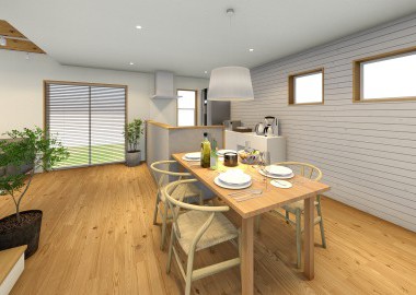 キッチンと一体型のダイニングテーブルで家事ラクな家事動線にもこだわり子育て世代にぴったりのお家です。
