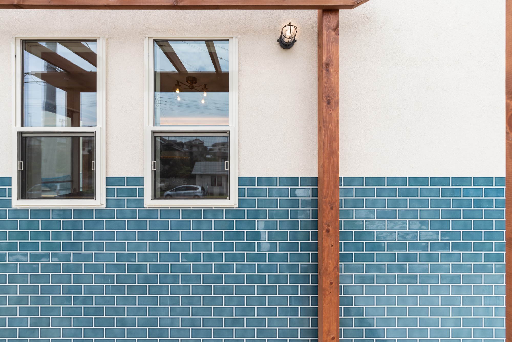 青いタイルの家
